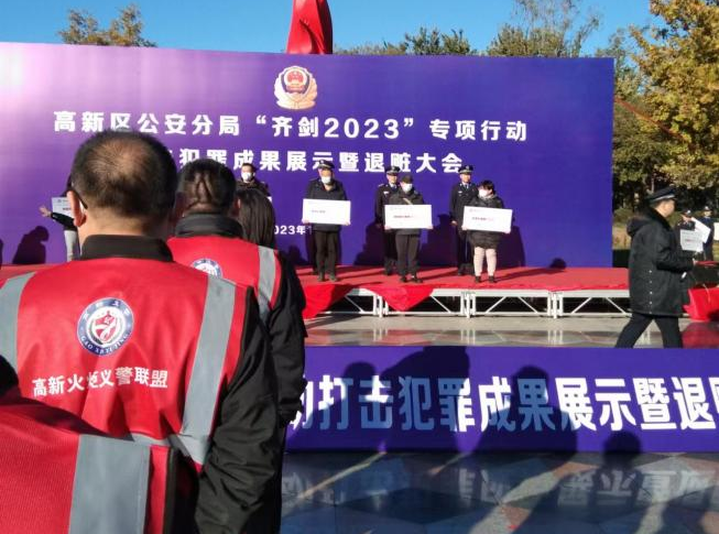近日,高新區(qū)公安分局在火炬公園隆重舉行“齊劍2023”專項行動打擊犯罪成果展示暨退贓大會,金盾公司派出12名員工作為高新火炬義警參與此次執(zhí)勤。