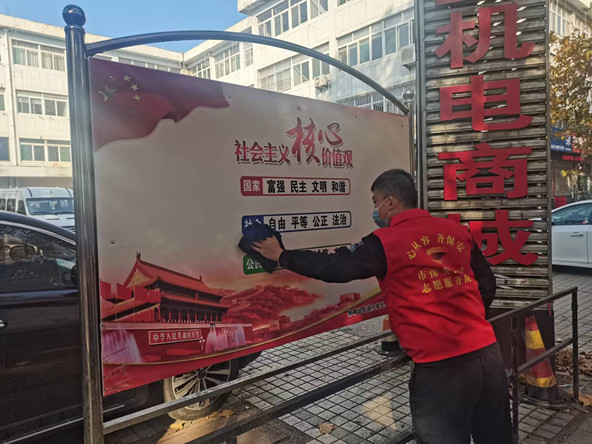 隨后,志愿者們又來到駐地附近的公共道路開展公交站牌和公益廣告牌衛(wèi)生清理工作,通過開展系列志愿服務活動,改善城市環(huán)境的同時,引導廣大市民提高環(huán)衛(wèi)意識,為營造整潔有序、環(huán)境優(yōu)美的城市環(huán)境貢獻了淄保力量。
